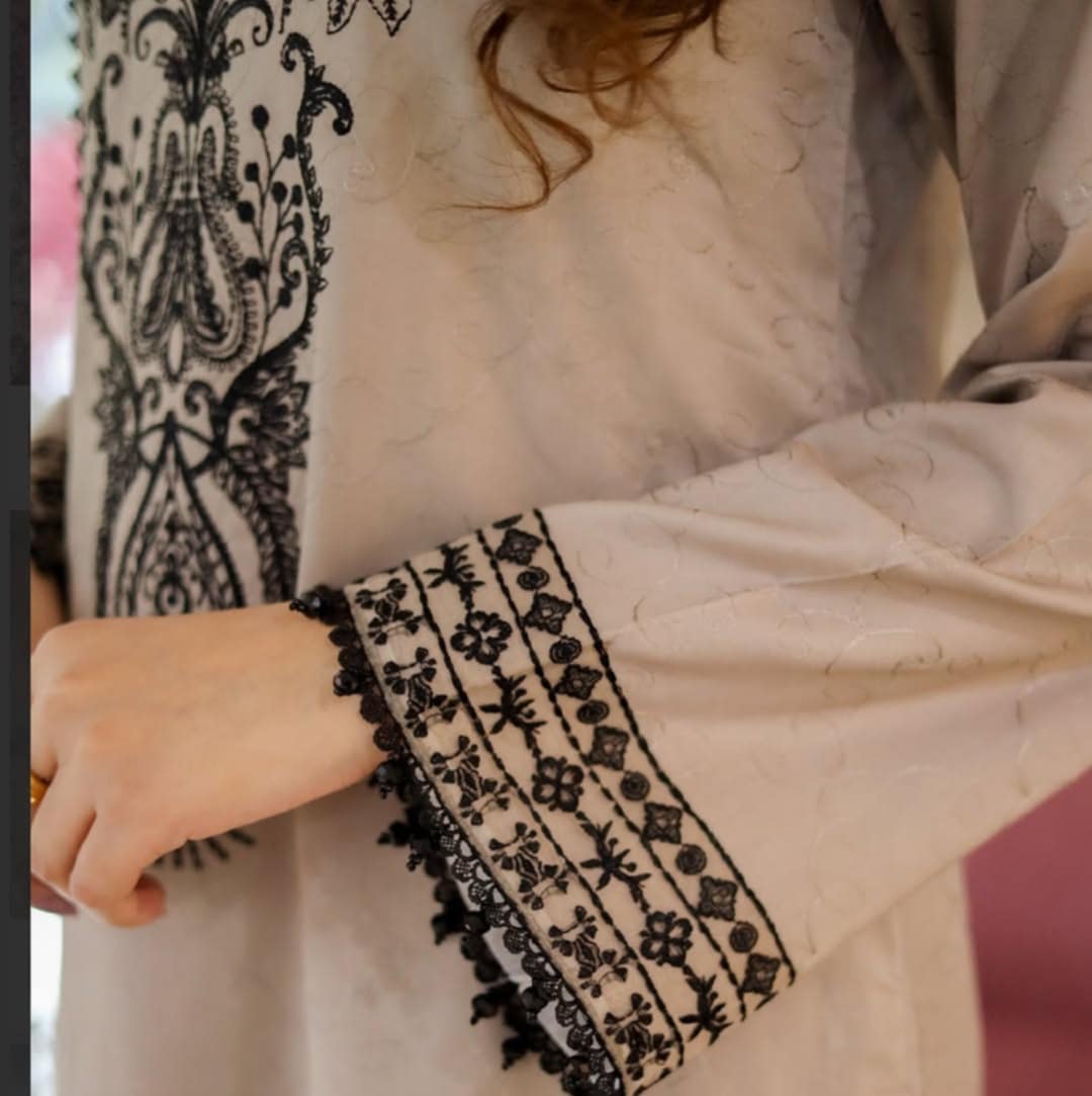 কালার: অফ-হোয়াইট ব্যাকগ্রাউন্ডে ফুলের ডিজাইন